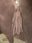 The AK Anne Klein 10M Iflex Suede Leather Ankle Boots in Brown, model Caroline, are stylish and versatile footwear perfect for various occasions such as travel, parties, casual outings, workwear, and business events. These ankle boots feature an almond toe shape, high heel, leather lining and outsole, and tassel accents for added flair. With a zipper closure and leather upper material, these boots offer both comfort and sophistication. Designed by Anne Klein, a reputable brand known for quality and style, these boots are a must-have for any woman's wardrobe.
