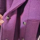 The AK Anne Klein Women's Wool Blend Coat in Purple is a vintage-inspired, classic designer piece that exudes old money style. Made with a wool blend outer shell and lined with acetate, this mid-length coat features long sleeves and a relaxed fit. The snap closure and waist pockets add practicality to the garment, making it ideal for travel, casual outings, or business meetings. With its solid purple color and timeless kimono style, this coat is a versatile winter and fall essential crafted in Vietnam. There is pilling and stain that I have not tried to clean. See photos for wear sold as is