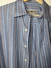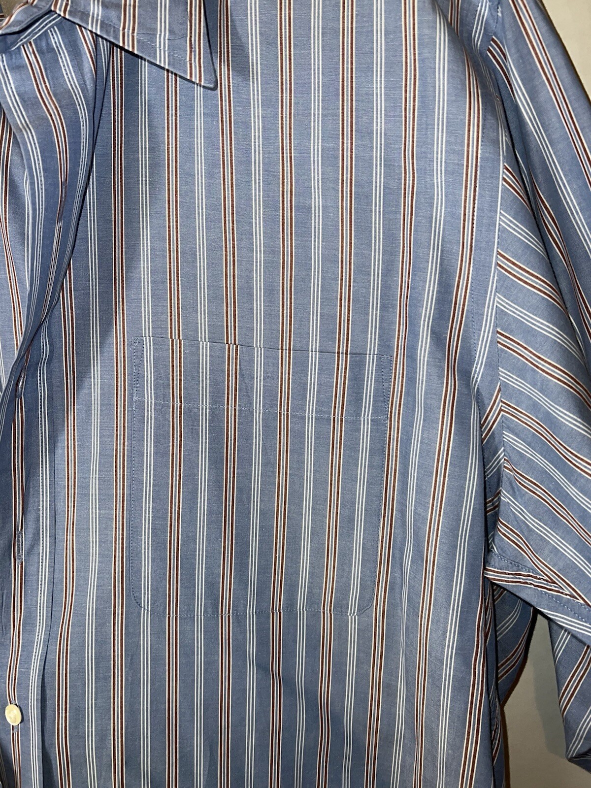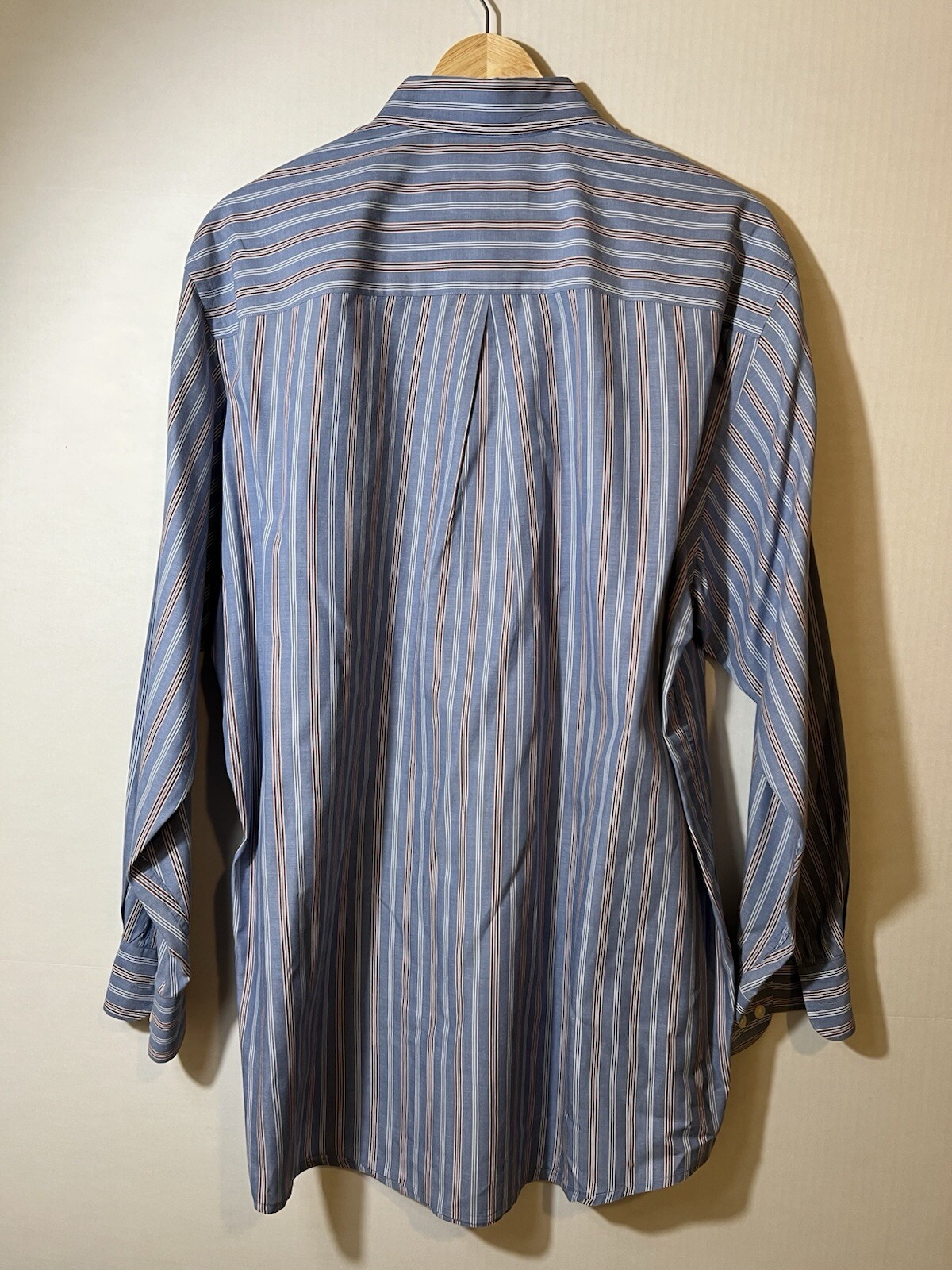 Elevate your everyday style with the AKA Eddie Bauer Men's Long Sleeve Button-Down Shirt. This classic blue and white striped shirt is a testament to timeless fashion, featuring a regular fit that ensures comfort without compromising on a smart silhouette. Crafted from 100% cotton, it's designed to provide breathability and ease of care, being machine washable for your convenience. The shirt boasts a lightweight fabric that's suitable for all seasons, making it a versatile addition to your wardrobe. It's equipped with practical features such as a button-down collar, a convenient front pocket, and button accents that add a touch of sophistication. Whether you're dressing for the office or a casual outing, this shirt is sure to meet the mark for style and functionality. pit to pit: 23 in length: 30 in 100% Cotton, Made in Hong Kong
