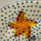 ALBA MEXICO TALAVERA TURTLE ANF STAR FISH DESIGN RAISED 3D DOTS ROUND PLATTER 3D Dots with Turtle and Orange and Yellow Starfish Star Green and yellow 9x9 inch
