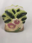 ** there is the tiniest of a chip on the towel holder. See the last photo for details UAdd a touch of elegance to your dining table with this ALCO Industries HIBISCUS Paper Towel & Napkin Holder. Crafted from high-quality ceramic, this holder is sturdy and durable. Its beautiful design features a delicate hibiscus flower, adding a touch of femininity to any table setting. Measuring 5 inches in height and 5.5 inches in width, this holder is the perfect size for napkins and paper towels. Ideal for use at home or in a dining room, this holder is a must-have for anyone who appreciates the finer things in life.