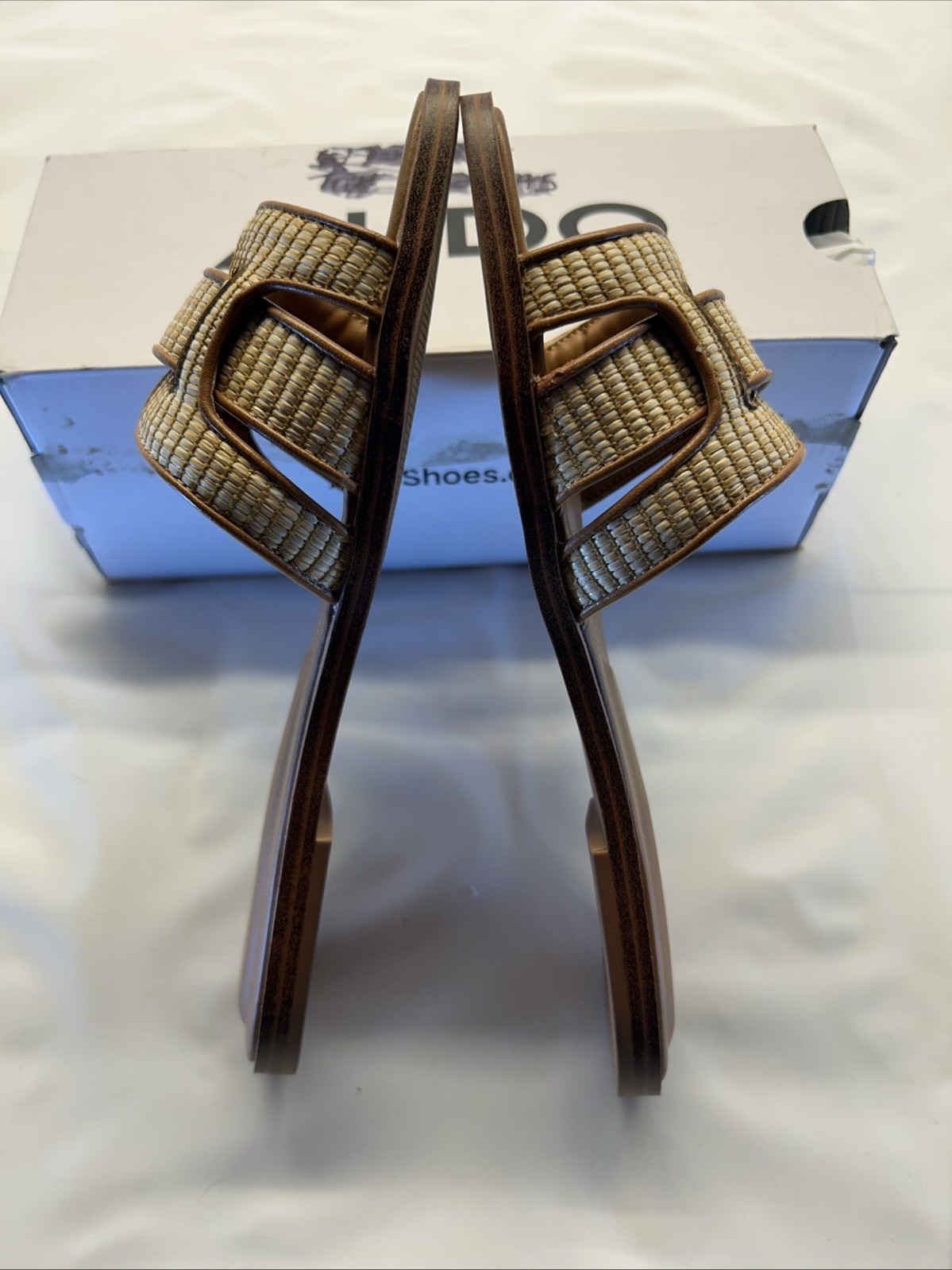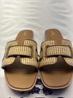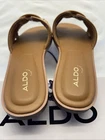 ALDO Elenaa Flat Sandals Tan/Brown Woven Look Slide In SZ 8 New in Box....Box has damage