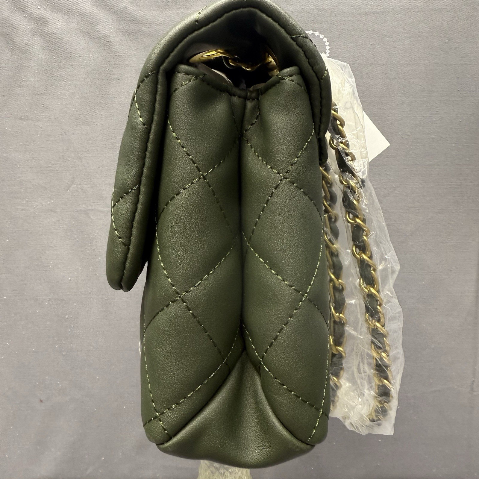 ALDO Olive Green Quilted Shoulder Bag with Gold Chain Strap Stylish ALDO quilted handbag in a rich olive green color featuring gold-tone hardware and a classic chain strap. This bag is brand new with original tags attached, and the chain straps are still wrapped in protective plastic. Features: • Authentic ALDO handbag • Quilted faux leather exterior • Olive green color • Gold-tone turn-lock front closure • Gold chain shoulder strap (protected in plastic) • Structured silhouette • Fully lined interior with branding Condition Details: • New with tags • Never used • No stains, scuffs, or odors • Hardware and stitching in excellent condition • Please review all photos for exact item and condition Perfect For: • Everyday wear • Evening or dressy outfits • Gift giving 📸 Photos show the exact item you will receive. Ships fast and securely packaged.