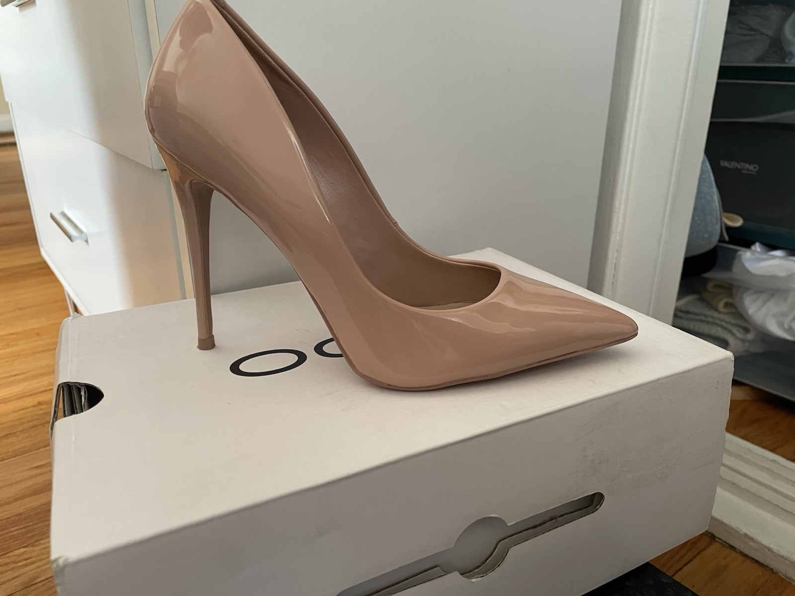 Preowned - no scratches In original box - well taken care of These ALDO Women's Stilettos are the perfect addition to your shoe collection. The pointed shoes come in a chic Stessy Nude color and are size 7. The heel style is a stunning stiletto that will instantly elevate any outfit.
