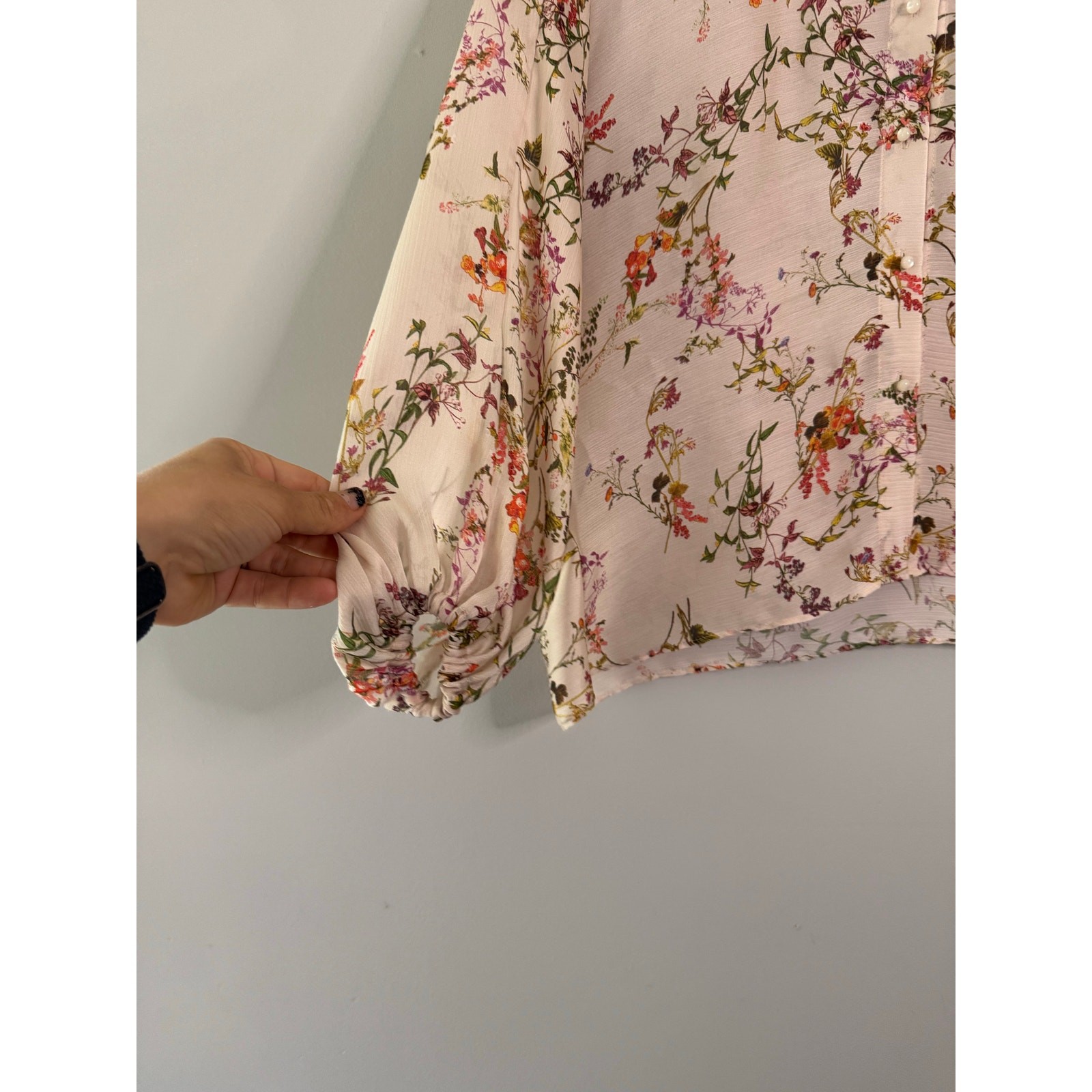 ALEXIS Nicolette ivory floral top Button front blouse Floral design Balloon sleeves Thin breathable material Vguc no flaws Approximate measurements Armpit to armpit 22” Hem 19” Length 22”