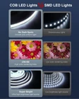【Dotless and Uniform Luminous Effect】 With advanced COB integrated packaging technology and a high LED density of 320 LEDs per meter, the COB LED strip outperforms traditional SMD light strips by delivering seamless and uniform illumination without noticeably visible breaks or glare. And its wide 180-degree beam angle ensures a soft and even light distribution. 【Ultra Bright and Natural Lighting】 The closely packed chips in these LED strips result in a higher density of light output and offer superior brightness levels.With a high Color Rendering Index(CRI) above 90, ensuring vibrant and true-to-life color reproduction that enhances the visual appeal of your surroundings. 【Energy Efficient and Durable】 With a real double-layer FPCB, the COB LED strip excels in heat dissipation and conductance. It consumes only 7W per meter, making it highly energy-saving. These enhancements result in a longer lifespan of over 55,000 hours, providing you with durable and efficient lighting solutions. 【Easy Installation and Cuttable】 The strong self-adhesive tape allows for convenient installation on dry, flat and clean surfaces. Equipped with pre-soldered 5.5x2.5mm DC female connector for a 12V power adapter. Additionally, it can be easily cut every 3cm/1.37in, making it ideal for various DIY projects. 【Flexible & Wide Application】With fewer components on the FPCB, it offers enhanced flexibility. These 12V led light strip can be utilized in various indoor lighting applications such as bedroom, kitchen, TV backlight, stair, corridor, high-end business club, KTV, ceilings, dressup mirror, make-up table and more.