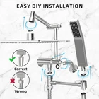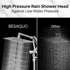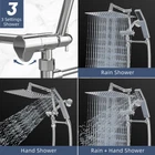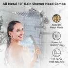 METAL RAIN SHOWER HEAD COMBO: The 10" rain shower head and hand shower made of stainlee steel and lead-free brass. The rain shower head give you powerful wide coverage stream. While the hand shower, easy to use for rinse hair, clean tub and bath for kid 3 SETTINGS & EXTRA LONG STAINLESS STEEL HOSE: Different settings for different purpose. Rainfall shower for relaxing and massaging, hand shower with long hose extend your reach bathing kid, pet, bathtub,or immersive rain and hand shower for waterfall spa 13" METAL SHOWER EXTENSION ARMS: Extra length Arms gives maximum flexibility for household, immerseive shower fairly above your head, avoid being too close to the wall.The free spinning locking collar allows tighten the arm ensures the maximum stability EXTRA LONG METAL BRACKET: Unlike others, this long bracket avoid the hand shower from HITTING the back of the rainfall shower head, allows you to shower under both rain shower and hand shower EASY INSTALLS & 5 YEARS SERVICE: Everything needed for installation is included in the package, folllow the instruction and finish installation without calling plumber. Let's us know if any question, we will get back to you as soon as possible