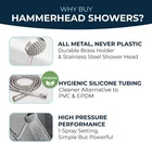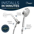 ALL METAL Handheld Shower Head with Hose and Brass Holder - BRUSHED NICKEL - GPM High Pressure Shower Heads with Adjustable Shower Wand Bracket - 6ft Flexible Extension Built to last – An all metal shower head made from stainless steel and brass with a commercial-grade finish that won't flake or rust. No more wasting money on cheap plastic that cracks and leaks! One setting, high pressure – Power through shampoo in even the thickest hair with a pressurized stream from customized silicone nozzles. Our GPM high-flow shower head holds nothing back. Extend your reach – Rinse yourself, kids, or pets like never before with our long metal hose, featuring 6 ft of tough but flexible stainless steel that won’t kink up when you need it most. Perfect spray angle – Finally, a hand held shower head with a solid brass shower holder that’s adjustable enough for the whole household (up to 23 degrees!). All over coverage is only a swivel away. Installs in minutes – No plumbing experience required: all you need are the included easy-to-follow installation instructions. Universal ½” thread is compatible with all homes in the US and Canada.