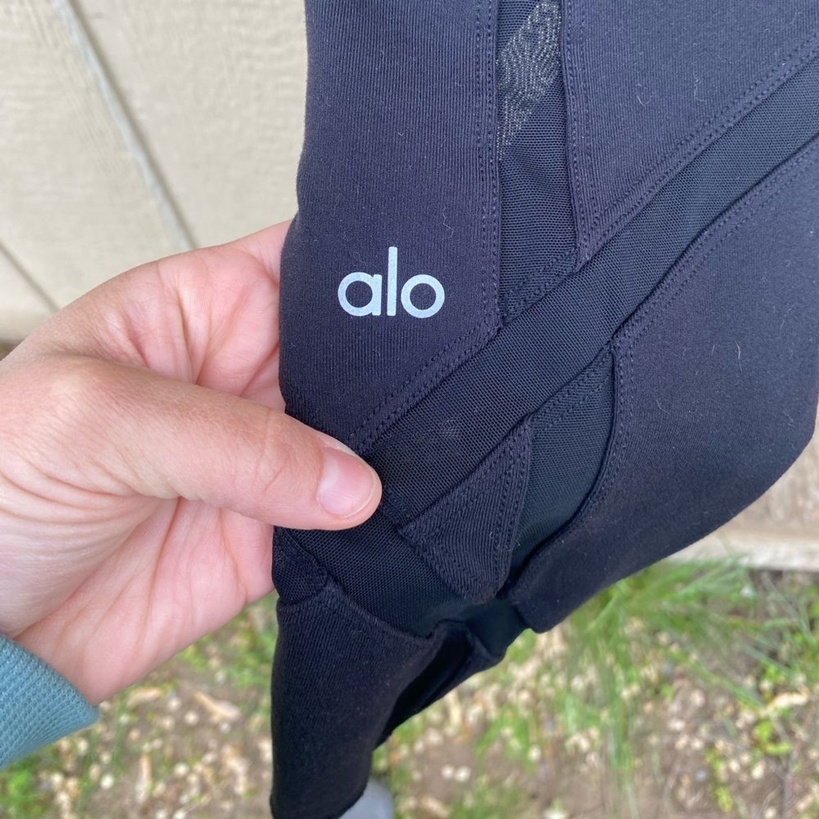 ALO Black Leggings Mesh Criss Cross Size XS Inseam - 22 inches Rise- 9 inches Good used condition-no holes or stains