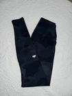 The ALO Yoga High Waist Camo Vapor Leggings in black camouflage, size small, offer a stylish and functional option for active women. Made with a blend of spandex and nylon, these leggings feature a high waist closure and a 28” inseam, perfect for yoga or other activewear occasions. With features like lightweight and breathable fabric, these leggings provide comfort and stretch for a range of physical activities. Easy to care for with machine washable material, these leggings are a versatile addition to any workout wardrobe.