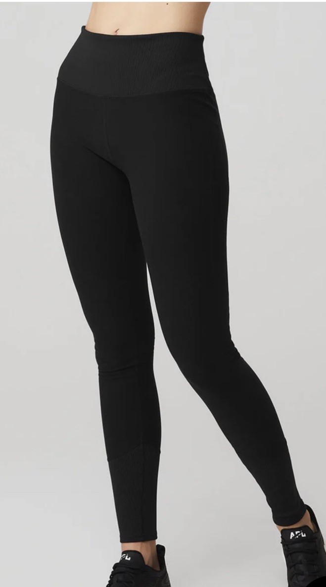 The ALO Yoga Highwaist Alosoft Lounge Leggings in black size XXS are perfect for yoga and other activewear occasions. These leggings feature a pull-on closure, a 28-inch inseam, and a ribbed waist for a comfortable fit. Made from a blended fabric of polyester and spandex, these leggings offer easy care, breathability, and a lightweight feel. The solid black color and skinny leg style make them versatile for various activities and seasons, such as summer, fall, and spring. Machine washable and with a regular fit, these ALO Yoga leggings are a stylish addition to any active woman's wardrobe.