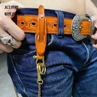 Crafted for durability and style, the ALZY08 belt is a testament to fine craftsmanship. Made from genuine cowhide leather, this 125 cm work belt boasts a robust build, ideal for both everyday wear and themed events. Its rich brown hue is versatile, complementing a variety of outfits, while the prominent buckle accent adds a touch of personality to the overall design.Designed with a unisex appeal, this RedTornado creation is a staple for those who appreciate a blend of practicality and edgy style. Whether you're into the biker scene or simply seeking a reliable and fashionable accessory, this belt is sure to become a favourite in your wardrobe.