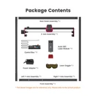 Features: π Ultrafine Laser Point & Powerful Laser Module & Faster Speed: Comes with the latest FAC laser technology for compressed laser point, 0.08*0.1mm Smaller laser spot and ultra-fine lines allow for impeccable details and cutting 4mm Birch Plywood, 5mm Basswood Plywood by one pass. Up to 12000 mm/min speed is and 400*435mm engraving area allows you to product more works at the same time. π Smart Integrated Control: The AlgoOS has built-in Algo Graphics Engine, A 5M JPG image could be processed within 30 seconds, from image to engraving within 1 minute, allowing ordinary users to be free from learning new software. DIY KIT MK2 is compatible with a wide range of Algo smart accessories such as Smart Hub, Heightening Feet, Dustproof Box, Camera or Purifier (purchase separately) for better carving performance. π 3.5'' Colorful Touch Screen: Embedded the screen in the AlgoLaser DIY KIT MK2 laser engraver, it has a friendly user interface and friendly experience. It cut multiple pieces of plywood or images to be engraved without tying up your computer to run it. And support save the Gcode file into TF card and engraving without computer connected. π Safety Protections: Equipped with multiple detections to protect users, which including Emergency Stop Button, Safety Lock, Main Board Overheat Protection, Over-voltage & under-voltage protection; And Laser Goggle and Laser Shield design for enhancing the safety of laser use. π Stable Structure Comes More Powerful Cutting Ability: Following the DIY KIT's design of single motor drive in X and Y directions and 20 profile structure, enabling users to assemble and customize independently. It enhances flexibility and personalization. This lightweight engraver is ideal for DIY enthusiasts and those seeking portability. The machine is well-assembled with 12 screws, no need for complicated belt tightening and other steps to reduce difficulty. π Wide Compatibility: DIY KIT MK2 laser engraver supports offline connection via WiFi-2.4 GHz and TF card (built-in 8G); Supports wired connection via USB Type-A & Type-C; Supports USB stick connection as well. For beginners, AlgoLaser App. LightBurn, and LaserGRBL software provide easy access to offline control and engraving. π Real-Time Detection & Smart Engraving: Adopt "Watchdog" which by monitoring the running status of the CPU and triggering a reset signal when an abnormality is detected, It effectively safeguards the program from getting stuck in an endless loop or running away uncontrollably and improve the stability and reliability of the system. And real-time Light Out Detection, check the status of laser beam, can find and solve problems in time to ensure the engraving quality and equipment stability. Specification: Model: DIY KIT MK2 Machine Size: 668.5*601.5*178mm Product color: black + red Frame material: aluminum alloy Drive mode: X-axis single motor drive, Y-axis single motor drive Engraving stroke: 400*435mm Maximum engraving speed: 12000mm/min Working light power (light source): β₯5000mW(5W) Laser wavelength: 455Β±5nm Focal length: 5mm from the hood Spot size: 0.05*0.1mm Lens material: glass Modulation mode: TTL TTL trigger mode: high-level efficiency (>DC2.0v) Working frequency: <30KHz Ambient temperature: 0β--35β Engraving material: acrylic, rubber board, density board, plywood, etc. Laser head life: >10000 hours Motherboard model: DIYKIT_MK2_V4.3 Touch screen: 3.5-inch IPS screen, capacitive touch TF card: support (built-in 8G) USB port: support (USB Type-A & Type-C) Input: 100-240~, 50/60Hz OUTPUT: 24V4A (6A MAX) Power consumption: 96W Power input: DC 24V/4A Standby power consumption: <2W Supported formats: jpg, svg, png, bmp, G code, dwg, etc. Supported systems: Mobile phones: Android & iOS, computers: Windows & Mac OS Packing List: 1 x DIY KIT MK2 Laser Engraver Kit