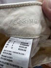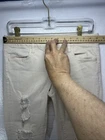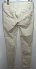 The product is a pair of American Eagle Jegging Jeans in women's size 8, featuring a distressed off-white color. Made from a blend of polyester, spandex, and cotton, these jeans offer a comfortable and stretchy fit. The 5-pocket design, mid-rise waist, and frayed bottoms add a trendy touch to the classic and modern look. Perfect for all seasons, these easy-care jeans are machine washable and have a zipper closure with button accents and the signature American Eagle logo.