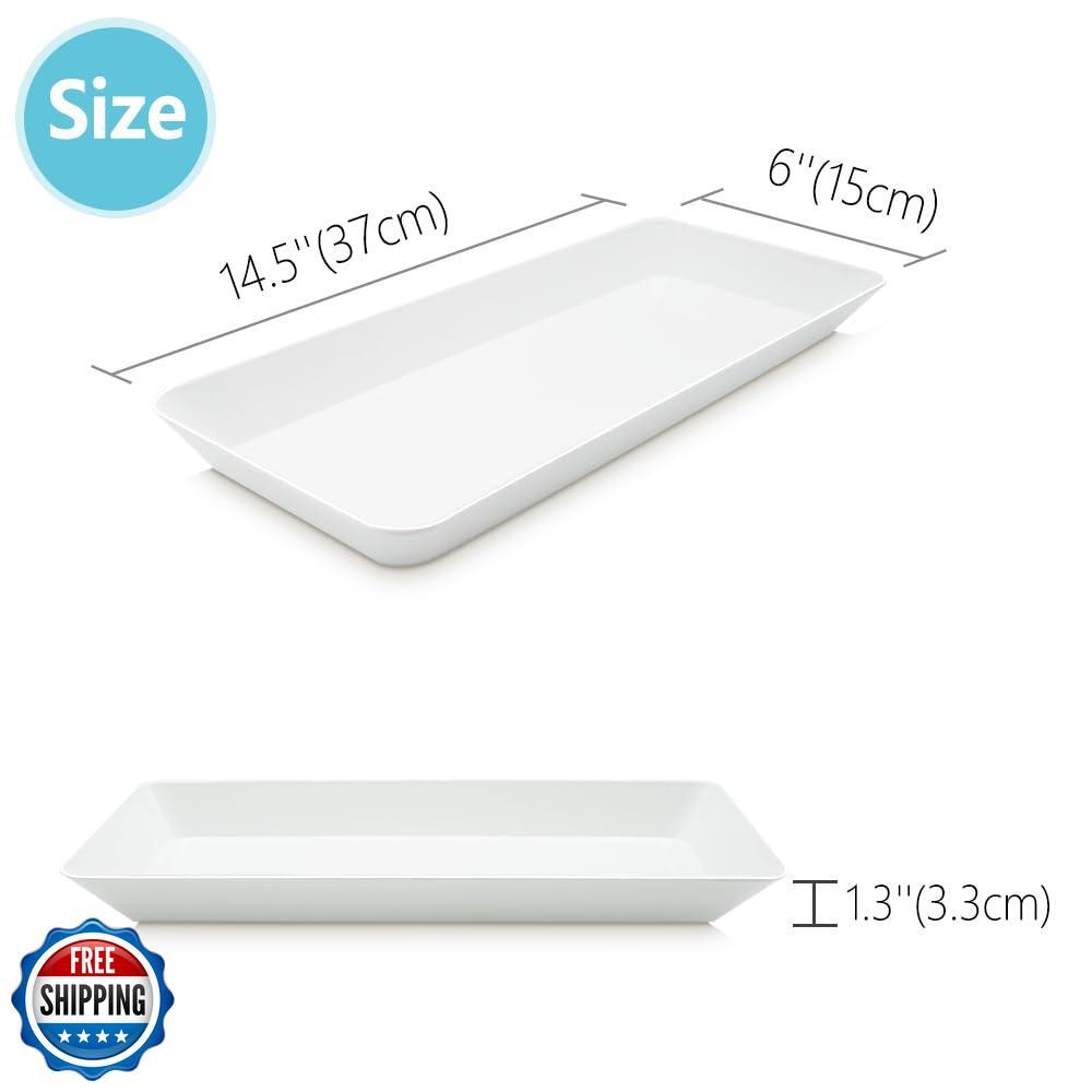 AMGBZT Serving Tray Platter Rectangle, 5 Pcs Long Narrow Food Tray for Veggie Fruit Snack Dessert, Plastic White Food Trays for Party Supplies Display, Rectangular Platters for Serving Food, BPA Free Features Serving Tray Platter Vlue: These serving platters are a practical addition to any dining setup. Measuring 14.5'' x 6'' x 1.3'', the white trays serve as ideal serving dishes and trays. Whether for snacks or main courses, this food tray offers functionality Durable And Reusable: Made of high - density, top - quality plastic, these serving pieces are reusable and BPA - free. The long tray suits large - scale serving, narrow dishes are for condiments, and there's a chip and dip set plus a fruit platter. Multi Function: Entertaining guests is a breeze with these plastic serving platters and bowls. The rectangular lunch tray is practical for daily use, and the charcuterie tray is perfect for snacks. Food display risers add charm to party food setups. Party Supplies Essentials: Elevate your party setup! A large serving tray handles main dishes. Snack & dessert trays offer variety. Use the cookie display stand, place a fruit platter on a food stand, or opt for a tiered serving tray to impress guests Easy To Clean: These white serving platters, eating trays, and plastic food trays are ideal party supplies. They're easy to clean, ensuring hygiene. Candy and cookie dishes in this set are not only practical but also add charm to your party spread. Shipping Free & Fast Shipping: We offer free shipping to most of the USA with a normal delivery time of 3-7 days. However, due to the current situation, additional delivery time (up to 3 weeks) may be required for some items. Alternative Carriers: We may use alternative carriers (e.g., USPS, FedEx, UPS) to ensure your package arrives safely and on time. Due to the use of multiple carriers, we are unable to provide a tracking number automatically. Handling Time: Orders are processed and shipped within 1-2 business days of receiving cleared payment. Shipping Restrictions: Shipping to Alaska, Hawaii, Puerto Rico, Guam, and other US territories may incur shipping charges or delivery restrictions. Please contact us before ordering, or your order can be refunded/cancelled. State Restrictions: Certain items may not be shipped to California due to state regulations. Contact for Tracking Updates: If you require tracking updates or have any concerns about the delivery of your order, please feel free to contact us, and we will be happy to assist you. Return Policy 30-Day Hassle-Free Returns: If you are not completely satisfied with your purchase, you can return the item for free within 30 days of receiving it for a full refund or exchange. Easy Return Process: Contact us, and we will provide you with a prepaid return shipping label and detailed instructions. No Restocking Fee: There are no restocking fees for returns. However, the buyer is responsible for return shipping costs if the return is not due to a seller"s error. Refund Processing: Refunds will be processed within 1 business day of receiving the returned item in its original condition. Feedback Your feedback is extremely important to us. We strive to provide the best products and customer service possible. If you are satisfied with your purchase, please take a moment to leave us a positive review. If you have any concerns or issues with your order, please contact us before leaving negative feedback. We are committed to resolving any problems and ensuring your satisfaction. Contact Us If you have any questions or concerns, please feel free to reach out to our customer support team. You can contact us through the eBay messaging system. We are available Monday to Friday, 9:00 am to 5:00 pm EST, and we will do our best to respond to your inquiry within 24 hours. Thank you for supporting our small family business!