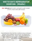 AMI PARTS WR71X10973 WR71X10607 Refrigerator Door Bin Middle Replacement for Ge Refrigerator Door Shelf AP5628753, 2313915, PS3513394, WR71X10253 (No Front) Description Features: Only Suitable For The Middle Part Of The RefrigeratorThe maximum front depth of Door Shelf Bin WR71X10973 does not exceed 4, if it exceeds it proves to be unsuitable for your model parts. When you are worried about refrigerator replacement WR71X10973 shelf box parts, suitability and durability are your first choices .We use rigorous testing to ensure our products will fit on buyers' refrigerator shelves Note-ONLY REPLACE WR71X10973 Refrigerator Door Bin Middle replaces AP5628753, WR71X10607, 2313915, PS3513394, WR71X10253. (Please note:Not replaced with WR71X10979WR71X10605WR71X10244)To save your time and avoid buying mistakes, please check if the side of your old part is the same as the picture before buying Material UpgradeOur WR71X10973 refrigerator shelf replacement parts are completely designed with pollution-free, safe, hygienic and superior materials. The refrigerator door frame is made of high quality resin. Upgraded materials for increased durability while maintaining safety. Easy to install, save time and money. Meet OEM specifications Product Details: Manufacturer: AMI PARTS Part Number: WR71X10973 Door Shelf Bin Item Weight: 1.76 pounds Package Dimensions: 17.04 x 8.7 x 4.69 inches Item model number: WR71X10973 Color: White Item Package Quantity: 1 Included Components: WR71X10973 Door Bin Module Shelf *1 Batteries Required?: No Date First Available: November 8, 2023 Handling We will ship all orders within 3 business day of payment. Delivery We Do Not Ship Outside of the Continental US. Return Policy All items qualify for returns within 30 days of receipt. Buyer is responsible for return shipping on any item that is not damaged. Feedback We take our reputation seriously, we buy and sell online, so we understand the value of trust. If you are unsatisfied with your order, please contact us and we will work with you to resolve it to your satisfaction.