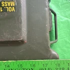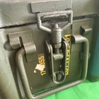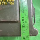 This is an authentic US Military ammo box designed to hold 1800 cartridges of 5.56mm ammunition. The vintage metal box measures 18x7x8 inches and is labeled as NR297C1. It is a collectible item with a military theme and is ideal for storing militaria or surplus items. The condition of the vintage thing, there are traces of time, scuffs, scratches, a dent on the side of the lid. Look at the condition in the photo.