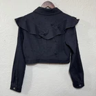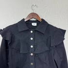 Item For Sale: AMT Above Mediocre Taste Jacket L Cropped Denim Jean Ruffle Ripped Thrash Grunge Women's size large Black denim canvas material Cropped length Silver toned large accent buttons Ruffled shoulder accent Distressed style, with ripped, deconstructed thrashed patches throughout 100% cotton Hand wash recommended Style #: RC6001 Item Condition: Item is in very good preowned condition with no flaws Shipping Information: Purchases are shipped the next business day after full payment is received, and on occasion an item purchased early in the day may end up shipping out that same day. The shipping service used will depend on the specific weight and dimensions of the item, but the most commonly utilized services are USPS First Class, USPS Ground Advantage, or USPS Priority Mail. If this is a book purchase, USPS Media Mail is used. Free returns are accepted for any reason within 60 days of purchase. The return shipping is free to the buyer. Once the returned item has been received, you'll be issued a refund for the original item cost (not including the original shipping cost). Store Information: Thank you for supporting my small business! Providing affordable, quality products and top-notch customer service is my top priority. If you have any concerns about an item you receive, please don't hesitate to reach out. I'm always happy to address any concern you may have.