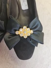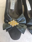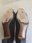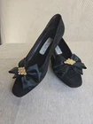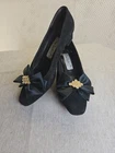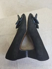 ANA BONILLA Elegant Dress Pumps in Black Suede with a Satin Bow are the perfect heels for a wedding, party, or formal occasion. Made in Spain, these size 8M pumps feature a square toe, slip-on closure, low kitten heel, and stylish accents of a bow and rhinestone. The elegant and lightweight design with leather lining and insole, along with a solid black color and leather upper material, makes these pumps a chic and versatile choice for any special event during the summer, fall, or spring seasons....#1477