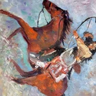 Original oil painting titled " Plains Rider " SIZE 18" x 20" COA issued and included. Painting is on prepped panel, fully varnished and ready to frame. Signed, dated, and titled on back of painting. Schooled in the fine art academies of Europe, and nearly 70 years of professional artist experience, Andre presents a bold, palette knife style with heavy texture and a decidedly modern take on the impressionist style. Buy directly from the studio and invest in a timeless piece of fine art. Collectors from all over the world own Andre's artworks. From corporate and public spaces, to private collections and home decor, Andre's work is renowned globally. Whether for yourself or as a present for someone special, a painting is a timeless gift that will serve as a memory for a lifetime. feb 8, 2025 .