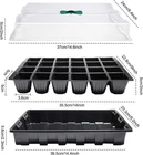 ANGTUO 5 Pack Seed Starter Trays for Planting 120 Cell Plant Black Product Details Material: Polyvinyl Chloride (PVC), Plastic Color: Black Special Feature: Drainage Hole Style: Garden Planter Form: Tray Shape: Rectangular Indoor/Outdoor Usage: Indoor Mounting Type: Tabletop Plant or Animal Product Type: Bonsai Flower Herb Succulent Vegetable Product Dimensions: 8.66"D x 2.76"W x 13.78"H Brand: ANGTUO Number of Pieces: 5 Pattern: Solid Included Components: Humidity Dome Theme: Floral Item Weight: 2 Pounds Item Weight: 2 pounds Manufacturer: ANGTUO Plant Germination Starter Kit: The seedling starter trays kit is made of PVC plastic material, and the quality is thicker, strong and not easy to deform. They can be placed on top of each other, saving space and easy to manage. Greenhouse Grow Trays: In addition to planting vegetables, flowers, herbs and other plants in the soil, the base tray can also placing peat pellet. There are two ways of use for you to choose from, meet your different planting needs! Seed Propagator Tray: 24-cell seed starting clone trays are convenient for centralized management, easy to operate and save your time and energy. There are drainage holes at the bottom of each cell for proper drainage, provide ideal conditions for seed germination and growing. Adjustable Humidity Dome: Seed trays with 2 ventilation holes, the adjustable dome can be opened and closed, more effectively controlling humidity and temperature, good for rapid growth of plants and fully controlling the germination process. Garden Plant Germination Kit: Transparent and pervious to light, easy to observe the growth of seeds at any time without interrupting the growth progress. Suitable for beginners to seed, can effectively improve seed germination, suitable for microgreens, soil Blocks, rockwool cubes, wheatgrass, hydroponic.