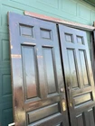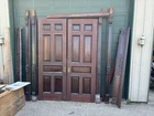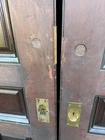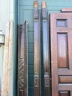 Description: These wonderful pocket door were salvaged from a Harlem NY brownstone. They are made of mahogany and are unpainted. The doors themselves each have 7 raised panels and are each 36 inches wide, 102.25 tall and 2.5 thick. We also have the moldings from both sides and they are included with the doors. The 4 legs are topped with carved corbels, are fluted and have carved lower panels. 2 pediments have crown moldings, applied wood carvings and applied raised panels. Overall including the moldings measurements are 94.5 inches wide by 116.25 tall. Overall they are in good condition. There are misc. scratches and dings as they are antique. They could use a good cleaning. Both doors had hardware holes added and both were plugged but not finished. Please look at the pictures carefully. Ref: Harlem hall to parlor Shipping We have a 16 foot box truck for salvage jobs and delivery trips. We generally make delivery trips along the I-85 and I-95 corridors to central Florida and the Florida panhandle in January. In spring and fall we go from Pennsylvania to Atlanta, over to Houston, up to Kansas City and St. Louis then up into Iowa, Chicago and home through Michigan and Ohio. Trips to NYC and New England are as needed. We can personally deliver if you are somewhat close to these routes much cheaper than freight or uship. Outside these areas it would be best to check uship.com for delivery quotes. Payment Payment should be made within 5 business days unless you make other arrangements in advance. Terms of Sale I accept returns only if my description is inaccurate. For example, if I pull an item from a building that I believe to be original to the house and it is later discovered to be a reproduction, or if I enter an incorrect measurement, I will allow the buyer to return the item. I describe all my items as accurately as possible with descriptions and often pictures of any damage. I try to measure within 1/8 of an inch. About Us My salvage business was born of necessity in 1993 when I started restoring an old Victorian home that had seen better days. I needed doors, staircase parts, fireplace mantles and more, so I contacted the owners of a few local buildings that were scheduled for demolition. I found and purchased all of the things that I needed for my project and lots of extra treasures which I eventually resold. 17 years later this is still my full time job! I salvage whatever I can think can be reused as long as there is room in my warehouse. The warehouse is open for treasure hunting anytime by appointment. Just contact me to schedule a day and time! Thanks for visiting. Steve and Michelle
