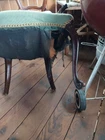 This beautiful antique armchair is a true Victorian treasure. Its intricately carved floral tapestry design is a stunning addition to any parlor or indoor space. The chair is fully assembled and requires no additional parts, making it a hassle-free addition to your collection. Crafted from high-quality wood, this armchair is both sturdy and elegant. Its needle point upholstery adds a touch of luxury to its already impressive features. The chair is a original piece and is not a licensed reproduction. It weighs 29 lbs and measures 24 inches in length, 23.5 inches in width, and 41 inches in height. This armchair is perfect for anyone looking for a unique and beautiful piece of furniture. The cushion underside needs attention.