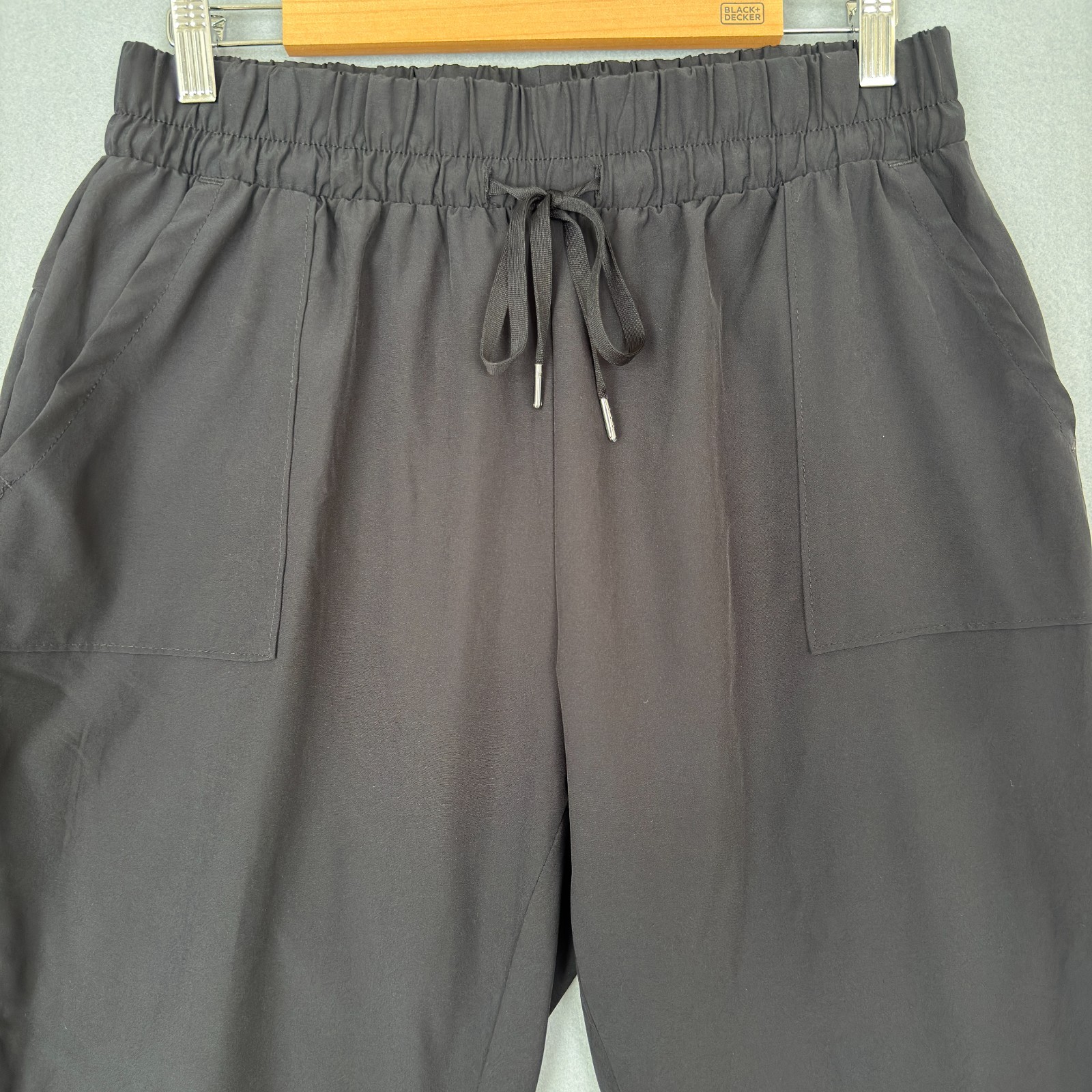 APANA Women's L Jogger Pants Black Elastic Waist Drawstring Pockets Athleisure Brand: APANA Size: Women L Color: Black Please review all photos for details and measurements to ensure fit before purchase.