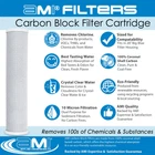 4.5”x20” Carbon Water Filter For Chlorine, Taste, Color, And Odor Reduction Activated Carbon Block Filter Cartridge to fit 20” Big Blue Filter Housing Removes Chlorine From 5,000 Gallons of Water @ 3 gpm AMI Activated Carbon Filter Cartridges remove chlorine, organics, color, tannin, and objectionable tastes and odors from water. AMI 4.25" x 20" filter cartridge is designed to fit 20-inch Big Blue housings. H-F4220AC Carbon filter is made with 100% carbon produced from coconut shells, a renewable and sustainable resource, offering superior chemical absorption compared to coal-based carbon filters. Applied Membranes Carbon Filters Significantly Reduce the Following Contaminants: Chlorine Chlorine By-Products - Trihalomethanes (THMs): A Group of organic chemicals suspected of being carcinogenic. Bad Tastes & Odors Turbidity (Cloudy Water) Herbicides, Pesticides, & Insecticides Volatile Organic Chemicals (VOCs): Organic Chemicals that turn into vapor. Best Tasting Water - Highest Absorption of Bad Tastes & Odors for Clean, Fresh Flavor Crystal Clear Ice & Water - Removes Color & Cloudiness 5 Micron Filtration - No carbon fines Eco-Friendly - Produced from renewable resources, using recycling programs and local sourcing Model:H-F4220AC Filter Cartridge Dimensions:4.25" OD x 1.125" ID x 20"L Fits 20” Big Blue Filter Housing(Approximate outside dimensions of housing are 7.5"OD x 23"L ) Capacity: 5,500 Gallon Chlorine Reduction @ 3 GPM Flow Rate:3 GPM (11 LPM) Micron Rating:5 μ (5 Micron) Carbon Type:Coconut Shell Carbon Amount of Carbon:5.4lb (2450 g) Polypropylene End Caps with PVC Compression Gaskets Operating Temperature:40-100°F (4.5-37.7°C) Max. Operating Pressure:125 psig (8.6 bar) Filter Cartridge Dimensions: 4.5" x 20"" - fits 20" Big Blue Water Filter Housing Reduces and removes Chlorine, organics, VOCs, color, tannin, and objectionable tastes and odors from the water. Quality Commercial Water Filtration down to 10 Microns with Activated Carbon Block Filter Cartridge Suitable for Pre or Post treatment of residential and commercial RO systems, or as a stand-alone Whole House Point of Entry or Point of Use water treatment solution. Uniform Extruded Carbon Core prevents the release of carbon fines and is rated for high dirt holding capacity.