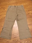 Elevate your wardrobe with these stylish Apt. 9 women's cropped pants. Made with a blend of linen, rayon, and spandex, these tan pants boast a mid-rise fit and straight leg style. The closure options include a zip, button, or hook & eye, ensuring a secure fit. The size 12 pants are perfect for any occasion, from casual to formal. To keep them looking their best, dry clean only. The garment's features include a crop length and a brand name of Apt. 9. These pants are a great addition to any woman's clothing collection. Hip to hip 17" Rise 10" Inseam 25" Leg opening 10" Please see all photos. Contact seller for any questions.
