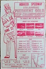 UP FOR AUCTION IS AN ORIGINAL 8 1/2" x 13" BLACK & WHITE POSTER FLYER FROM AQUASCO SPEEDWAY 8th ANNUAL PRESIDENT GOLD CUP CHAMPIONSHIPS FROM 1969.THE FLYER HAS BEEN FOLDED AND HASSOME CREASING FROM HANDLING,BUT OTHERWISE IT IS IN GOOD CONDITION.