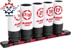 ITEM SPECIFICATIONS: This 5-piece Non-Marring Impact Lug Nut Socket Set includes a reusable lightweight aluminum storage rail and five non-marring 1/2-inch drive lug nut sockets in the following sizes: 17mm, 19mm (3/4-inch), 21mm, 13/16-inch, and 7/8-inch. DESIGN CONSIDERATIONS: Made of high strength Chrome Molybdenum steel with a corrosion-resistant Manganese Phosphate coating, these 6-point, thin-walled, impact-ready sockets feature a non-marring protective sleeve and insert to prevent scratches to your bolt tops, wheel rims, and lug nuts during use. Thanks to a total length of 3 3/8 inches (8.6cm) and a hollow design, these sockets are great for removing longer bolts, as well. COMMON APPLICATIONS: These impact sockets can be used with any 1/2-inch drive hand wrenches, electric, or pneumatic tools, and are great for both factory and aftermarket painted, clear coated, chrome, and any other wheels with a finish you want to protect. RELIABLE | EFFECTIVE | EFFICIENT: Users trust ARES to be quality tools. You are backed by our Performance Assurance Limited Lifetime Warranty. If you have any issues with your 5-Piece 1/2-inch Drive Non-Marring Lug Nut Socket Set, simply contact customer service for troubleshooting help, parts, replacement, or refund. ASPCA BUSINESS AMBASSADOR: We are proud to be part of the ASPCA Business Ambassador Program. If you have a pet, you realize they are more than a pet, they are part of the family. With your support, we’re proud to help this great organization. Product Description