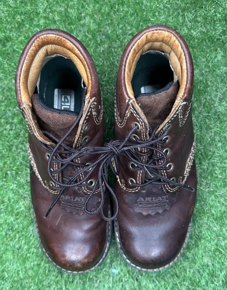 Pre-owned Ariat Canyon women’s work boots in size 6.5 B. Classic brown leather lace-up design with 4LR comfort technology. Model 10001254. Good used condition with some scuffing and wear (see photos). Great for work, ranch, or casual western style. ✅ Leather upper ✅ Durable stitching ✅ Comfortable 4LR insole ✅ Women’s US size 6.5 B / EU 37 Ships fast and professionally packed!