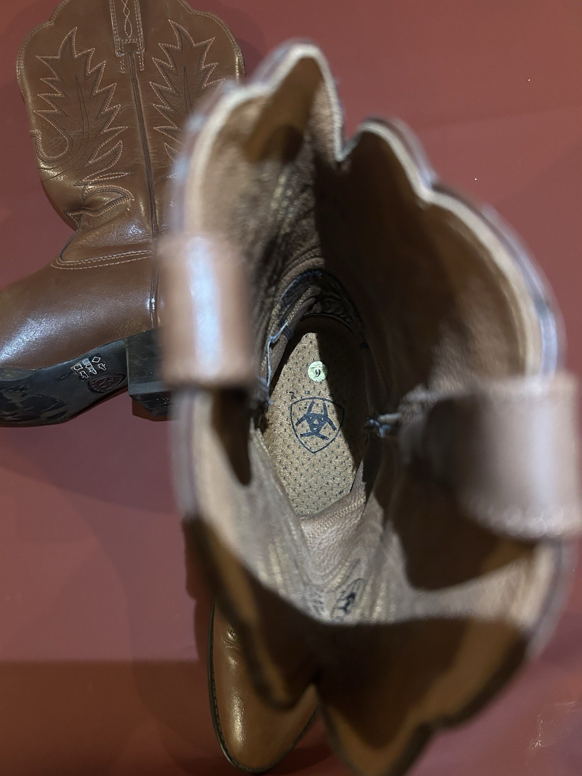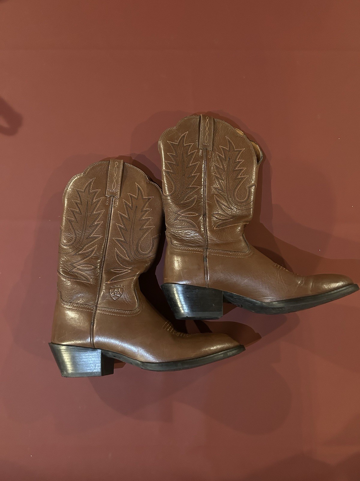 The ARIAT women’s brown leather cowboy boots in size 6 are a stylish and durable footwear option for casual and workwear occasions. With a pointed toe, low block heel, and mid-calf shaft style, these Western-inspired boots offer comfort and a touch of cowboy flair. Made with quality leather and featuring a pull-on closure, these boots are suitable for all seasons and are sure to become a versatile staple in any woman's wardrobe.