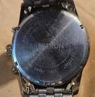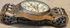 This Armitron Gentlemans Gold Chronograph Watch features a gold bezel, stainless steel bracelet, and a round gold dial with Arabic numerals and baton indexes. It has a quartz movement with Swiss technology, water resistance up to 165m, and multiple features including a date indicator and luminous hands. The watch has a 44mm case size, 10mm thickness, and a double-locking fold-over clasp. It is a stylish dress/formal accessory with a celebrity theme. For local pick-up I also do Mastercard, Visa, American Express, Cash App and Venmo.