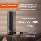 ARRIS (G34) - Cable Modem Router Combo 10 inches x 3 x 8 inches, Black Product Details MultiGig speed for today & tomorrow: DOCSIS 3.1 performance supports cable internet plans up to 2.5 Gbps, delivering ultrafast streaming, gaming, and downloads. Save on rental fees: Own your modem and avoid monthly equipment charges - check with your cable provider for plan compatibility. Compact, modern design: Space saving footprint with simple LED indicators for power, upstream/downstream, and online status. Easy setup: Connect cable, power on, and activate with your cable provider. Then join the default Wi-Fi or personalize your own Wi-Fi network name and password. Wi-Fi 6 Coverage: Includes dual-band W-Fi 6 (AX3000) delivering up to 3 Gbps wireless performance for your whole home. Fast Ethernet: Provides 4 - 1 Gigabit Ethernet ports for multiple wired devices. Provider compatibility: All SURFboard modems are CableLabs certified to work across major US Internet Service Providers. Tested and qualified for use with Cox, Xfinity, and Spectrum. Check with your provider to confirm device model support Not compatible with fiber, DSL, or satellite services. G34 DOCSIS 3.1 Cable Modem + Wi-Fi 6 Router for multi-gig internet. Fast speeds for streaming & gaming. Own it and eliminate monthly rental fees!