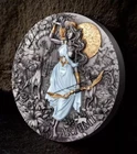 PRODUCT DESCRIPTION Artemis 2024 2 oz 2000 Francs CFA Pure Silver Antique Finish Gold Plated Coin with Diamond – Cameroun – T&S Coins Let’s dive into the untamed beauty of nature with our exquisite silver collectible coin, “ARTEMIS,” which not only honors the Greek goddess of the hunt and the moon but also reveals a gripping story of unbridled passion and a tragic curse… The coin’s design captures the legendary story of Actaeon. Actaeon, a skilled hunter trained by the centaur Chiron, accidentally stumbled upon a secluded place where Artemis and her nymphs were bathing in a hidden stream. When the goddess saw that Actaeon was watching her naked, she became enraged and placed a terrible curse upon him. Transforming him into a deer, she ensured that his own hunting dogs would not recognize their master. This limited-edition silver coin, set with sparkling high-quality diamonds, impressive relief, and gold details, embodies the spirit of Artemis and the consequences of disobeying nature’s laws. It invites you to reflect on your connection with nature. Let this story inspire you to stay true to your ideals and have the courage to stand up for them. Specification Country: Cameroun Year: 2024 Face Value: 2000 francs Metal: Silver Fineness (purity): .999 Weight (g): 62.2 (2 oz) Diameter (mm): 45 Quality: Antique finish + gold plating Mintage (pcs): 500 Certificate (COA): Yes Presentation case (box): Yes Certified Diamonds: 0,03 ct / F/VS