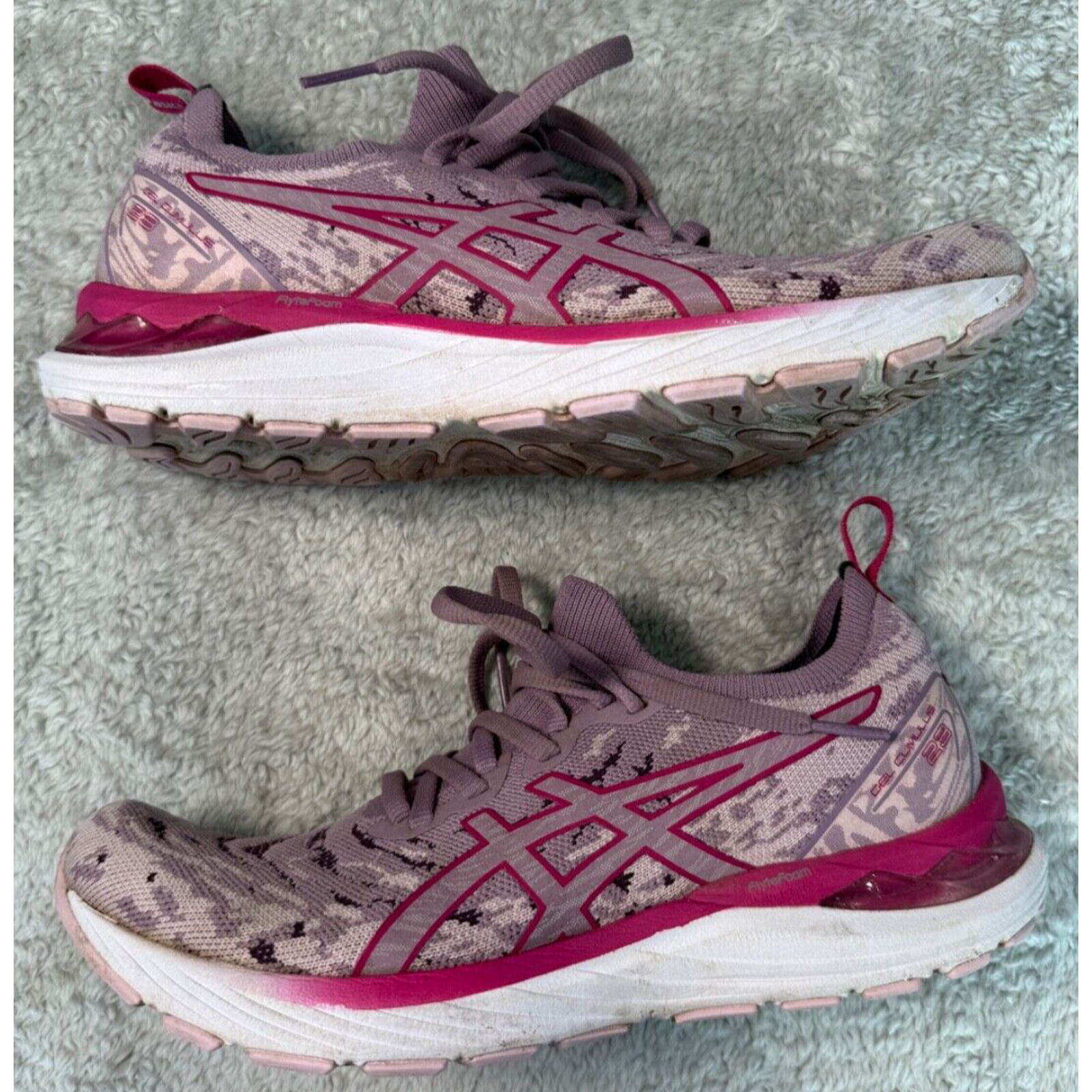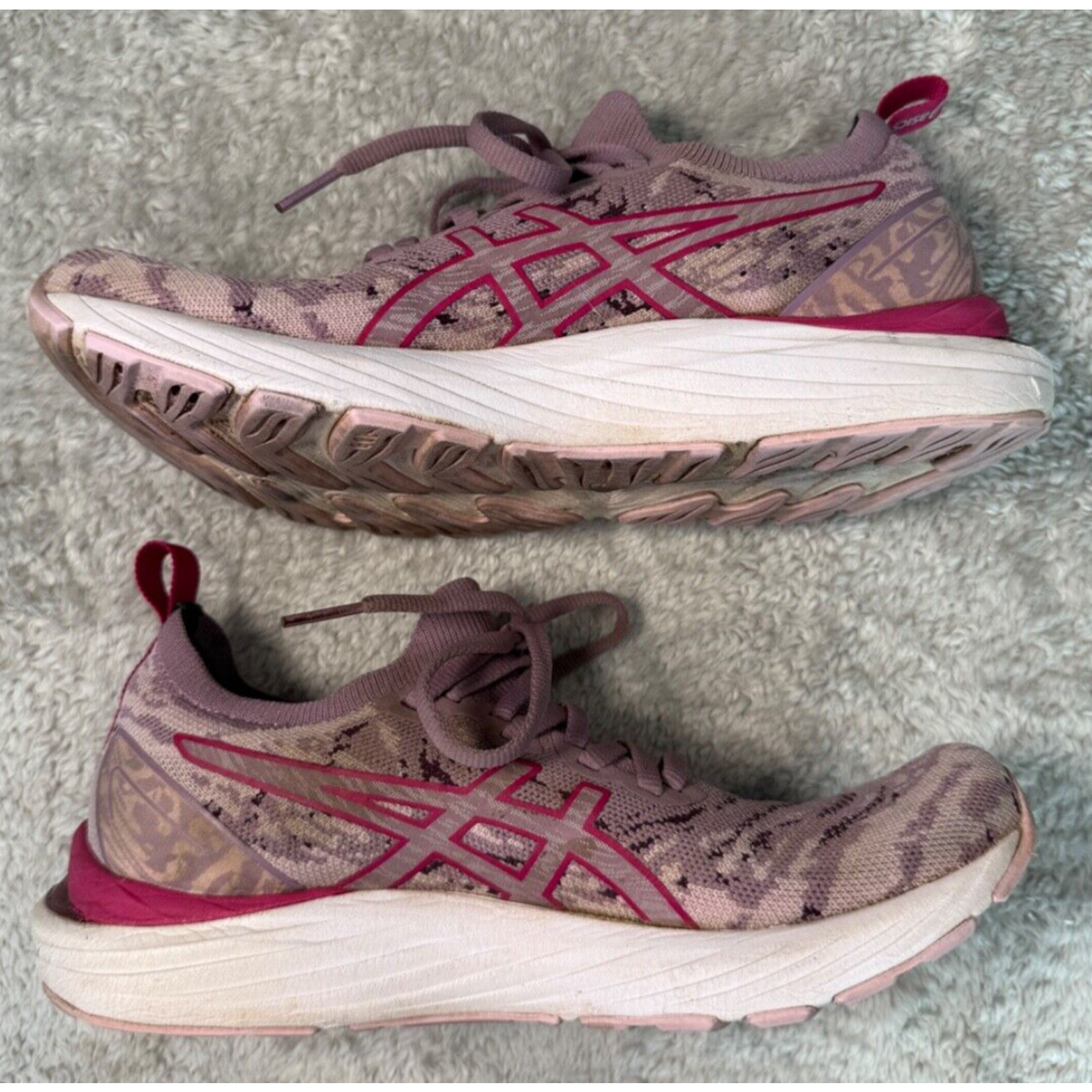 ASICS Gel Cumulus 23 Knit Mauve Pink Animal Print Running Shoes Womens Size 8 Excellent condition - see pictures for wear Orders ship within one business day. Feel free to ask any questions before buying, we want you to be happy with your purchase. Smoke-free environment