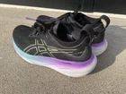 Up for sale is a pair of ASICS “Gel Nimbus” running shoes in Black/Glow yellow in a size 7.5 women’s. The shoes were not used for running but just a casual, comfortable shoe to wear around the house or everyday wear. They do have some stains on the toes but due to the dark color, it’s very hard to see. I just washed them so they are clean, inside and out.