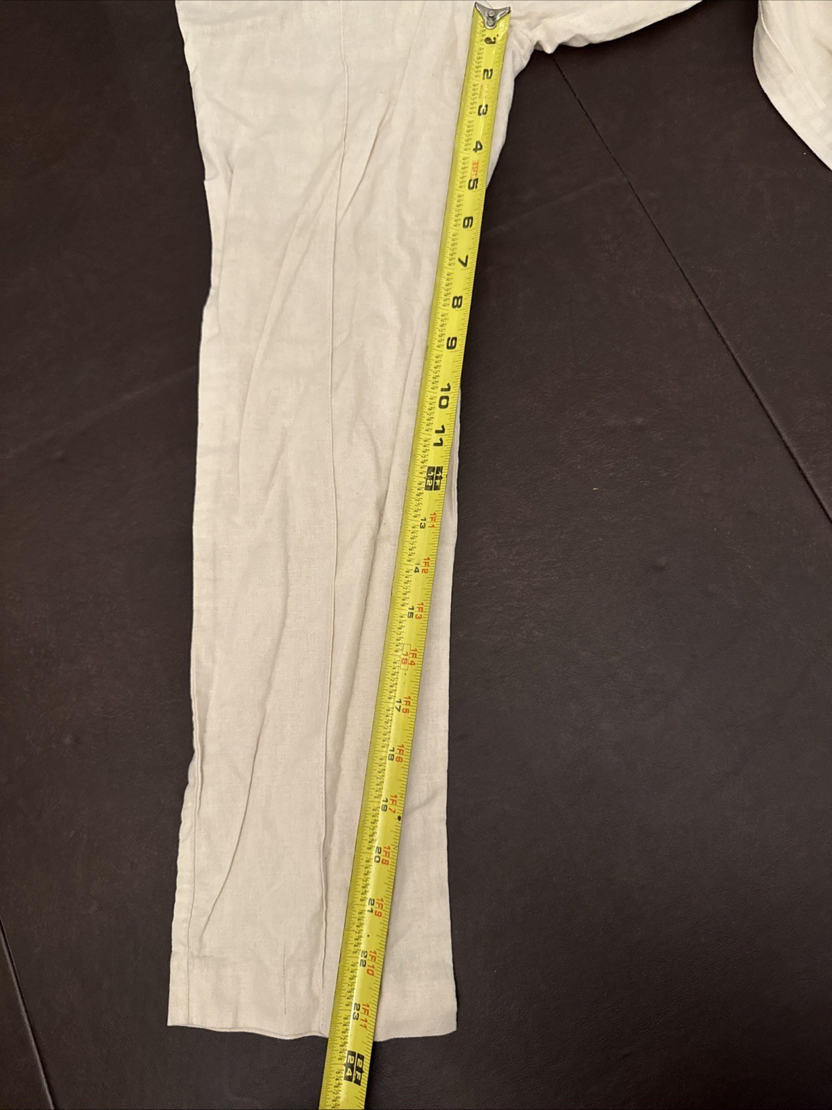 These linen-blend pants are perfect for those days when your legs want to breathe but still want to look chic. With a high-waisted design, they offer both style and comfort, like a fashion-forward hug for your waist. • Button & zipper closure • Light pink color • Made in Vietnam • Machine washable Some wrinkles present; 40 inches long from top to bottom.