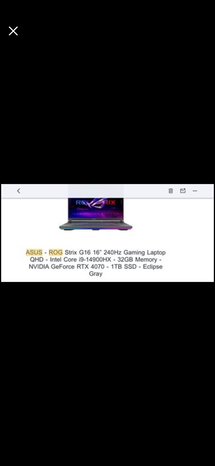 The ASUS ROG Strix G16 Laptop is a high-performance gaming laptop equipped with a powerful i9 processor, 32GB of RAM, and a 1TB SSD for lightning-fast storage. With a 16-inch screen and a maximum resolution of 2560 x 1600, this laptop provides crisp and clear visuals for an immersive gaming experience. The laptop is designed in a sleek gray color and features dedicated graphics processing for smooth gameplay. Best Buy warranty expires on 2/26/27