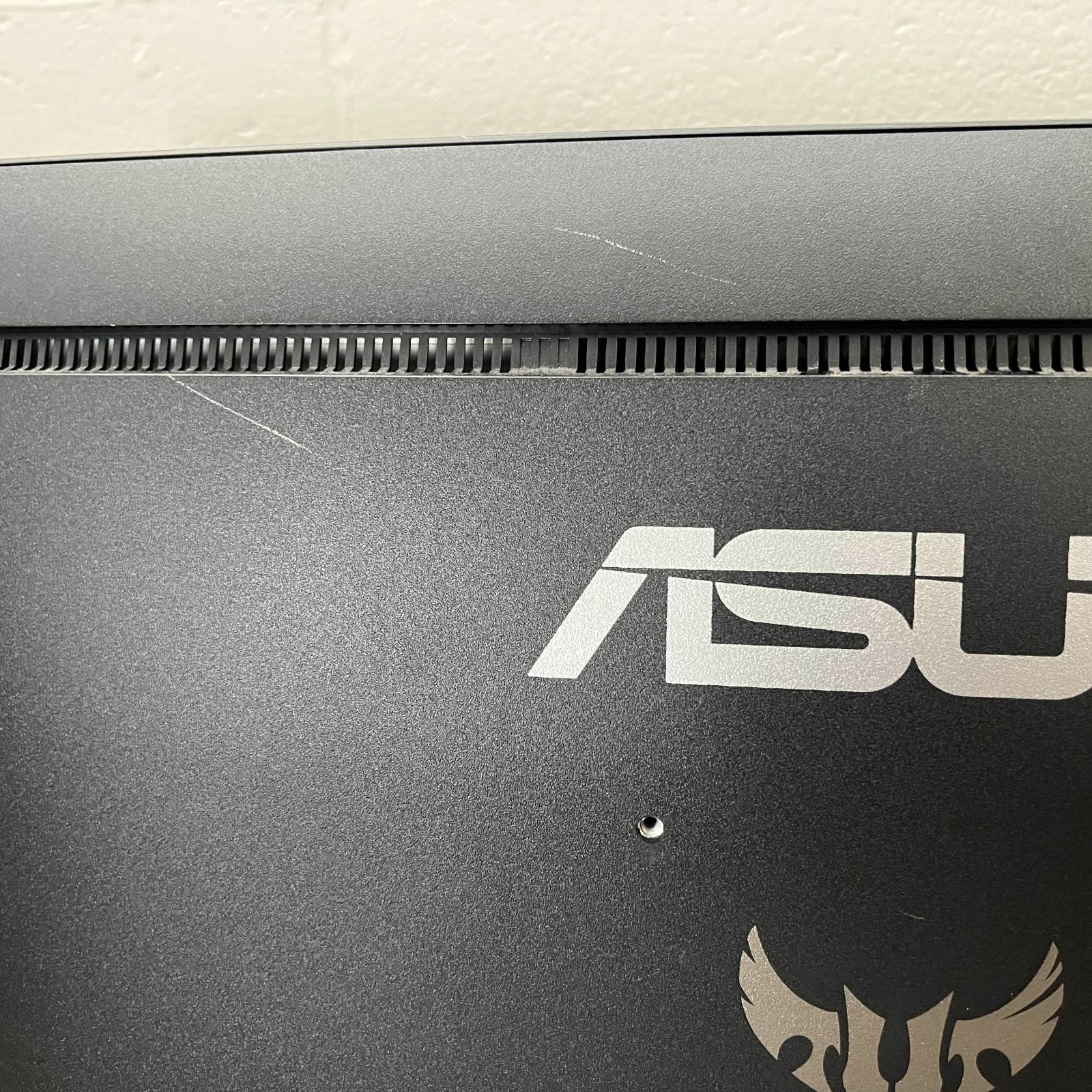 Used. Has cosmetic flaws and a dead pixel somewhere in the top right. Includes all cables and stand but missing the VESA screws.