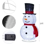 ⛄ PREMIUM QUALITY: This outdoor lighted snowman is made of a durable metal frame and covered in hand-sewn tinsel fabrics for a lovely look. ⛄ CUTE SNOWMAN: Our 3 foot light up snowman with a black top hat and drapes down a red scarf, carrot nose and black buttons, adorable design adds your Christmas and winter great fun, is the perfect Christmas decoration to greet family and this holiday season. ⛄ 60 PRE-LIT LED LIGHTS: This outdoor snowman decorations features 60 cool white LED lights, create a glowing nighttime display, plug in design for easy use, will brighten up your Christmas decor by creating an attractive focal point in your yard or porch. ⛄ EASY ASSEMBLE AND STORAGE: This snowman yard decoration with collapsible design for quick, easy set up and space saving storage, perfect for a small place, no tools or specialized skills are required, please refer to the instructions for detailed installation. ⛄ COLLAPSIBLE CHRISTMAS DECORATIONS: This Christmas Snowman come in a nice box that can be a Christmas gift for your family and friends, it can be used to decor your office, the living room, dining room or entryway. Great for Christmas Themed Party, Christmas Indoor and Outdoor Decorations, or Christmas yard Decoration!