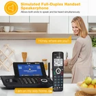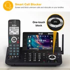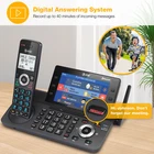 AT&T 5-Handset DECT 6.0 Cordless Home and Business Phone with Answering Machine, 5" Color Display, One-Touch Shortcut, Conference, Intercom, Smart Call Blocker, Bluetooth Connect to Cell Key Features 5" Color Base Display Manage your communication with this ultra-clear 5" color base display. Soft keys on the side & bottom of the screen make it easy to access the functions of the phone. Personalized feature shortcuts Assign shortcuts on the large base display for quick access to the features that are most important to you. Have one touch access to an important contact, messages, call history, timer, etc.. Unsurpassed range Experience the best in long-range coverage and clarity, provided by a unique antenna design and advances in noise-filtering technology. Smart Call Blocker Say goodbye to unwanted calls. Robocalls on your landline are automatically blocked from ever ringing through—even the first time. Connect to Cell Make and receive calls from your cellular plan while enjoying the comforts of a home phone. Pair up to 2 cell phones and connect 2 cell phones or one cell phone and one BLUETOOTH headset for use with landline calls. Digital Answering System With up to 40 minutes of recording time, the digital answering system grabs calls when you can't. Simulated full-duplex handset speakerphone Enjoy a handset and base speakerphone that can keep up with your calls. Increase participation by allowing both ends to speak—and be heard—at the same time for conversations that are more true to life. Additional Features and Information Unsurpassed range 5" Color Base Display Personalized feature shortcuts Colorful lifestyle wallpaper options for base display User friendly soft key shortcuts Connect to Cell™ Siri®, S Voice® and Google Now™ access Smart call blocker 1,000 name and number smart call block list Caller ID announce Simulated full-duplex handset and base speakerphones Push-to-talk Downloadable phonebook directory 1,200 name and number phonebook contacts Countdown timer Expandable up to 5 handsets with only one phone jack - uses DLP70090 accessory handset (sold separtely) Digital answering system 40 minutes of digital recording time Rich information (ie message date, time, caller ID, phone number) are all displayed in a single screen on the base unit. Call screening Call intercept Remote access Message retrieval from handset Message time stamp Caller ID/call waiting—50 name and number caller ID history Quiet mode ECO mode power-conserving technology Extra-large display for easy viewing Big Buttons Table- and wall-mountable (wall mount sold separately on telephones.att.com) High-contrast backlit LCD and lighted keypad DECT 6.0 digital technology Conference between an outside line and up to 4 cordless handsets Intercom between handsets and base unit Volume control Voicemail waiting indicator Quick access key for voicemail box Last 10 number redial Mute Any key answer English/Spanish/French setup menu IMPORTANT INFO While we do our best to describe the item and take utmost care to package it but as humans we are capable of making mistakes. We sell a lot of open box items and that is why you always get the best prices in our store but expectations could vary for every buyer. If there is ANY issue with the product you have received, please contact us and we will rectify the issue. After any transaction ebay gives you a chance to leave feedback and DSR ratings for the seller. We strive for a 100% positive feedback and 5 Star EBAY DSR ratings. Please contact us if you plan to leave any less than a 5 star rating for us. We will do our best. This is our promise. If you are unhappy and would like to return the item, we will do that gladly. We will get the item back and will issue a full refund. You can buy from us with complete confidence. Warranty We offer a warranty period of 30 days for all our products, during which we will be happy to replace the item, if we are unable to provide a replacement or repair the item, we will issue a full refund. Contact us We can be contacted at any time through eBay messages if you have any questions, comments or product requests. We will respond to you within 48 hours and do our best to help you out! We encourage our customers to contact us with any questions or concerns! We'd like to be sure you are completely satisfied with your purchase. Why Buy From Us While there are tons of open box products being sold on ebay, We are different in their approach towards consumer satisfaction. We stand behind our sales & hold full responsibility towards what we sell. Our items are fully tested and functional and ship with all required peripherals and manuals (electronic manuals are provided where paper manual is not available), packaged nicely.