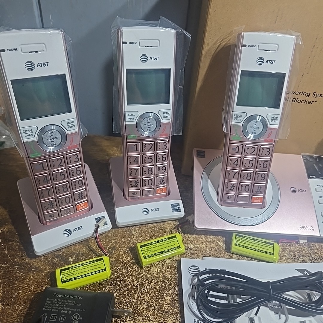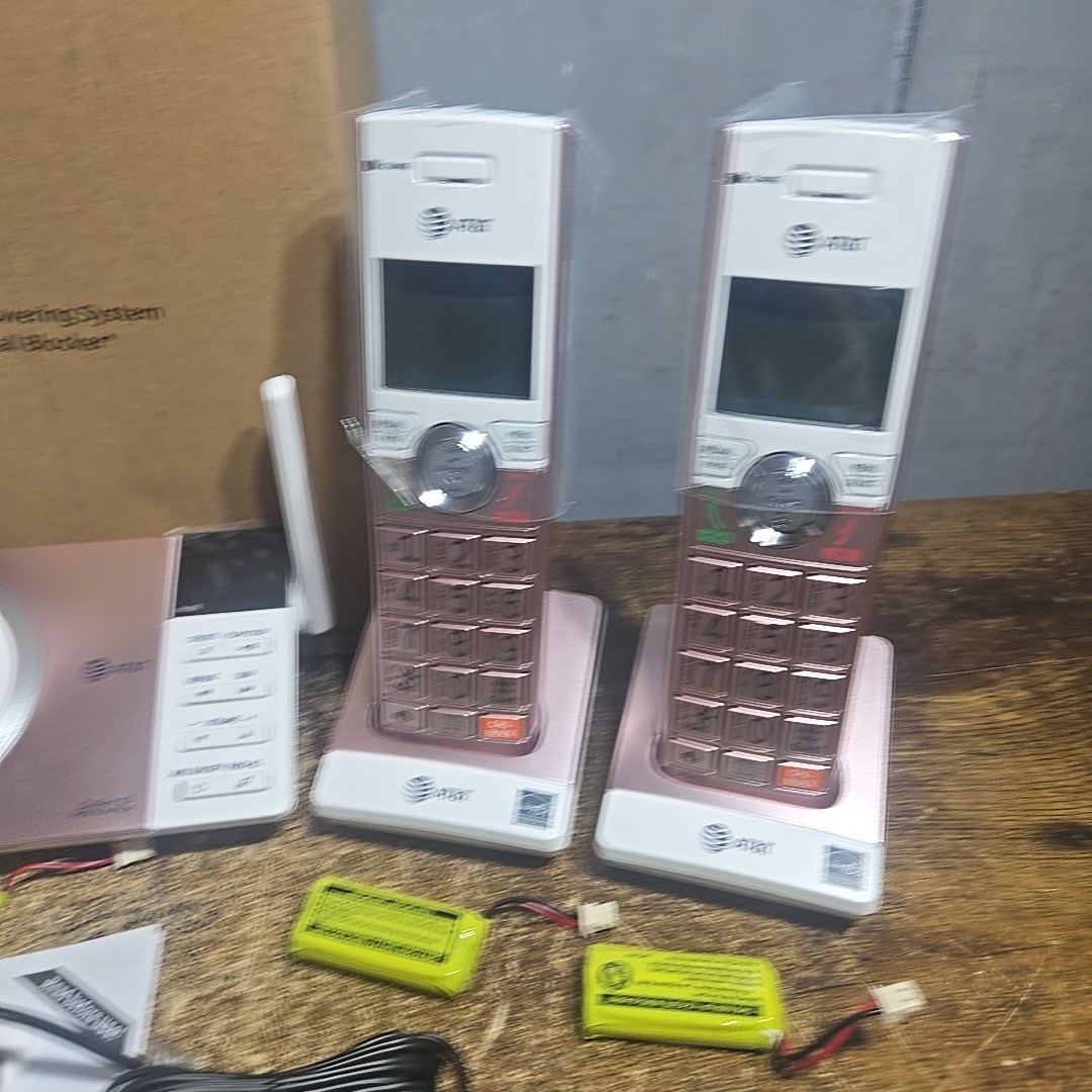 The AT&T CL82557 DECT 6.0 5-Handset Cordless for Home with Answering Machine and Blocker is a versatile and stylish home telephone system. With its sleek rose gold design and five handsets, it offers convenience and ease of use for any household. The built-in answering machine ensures that important messages are never missed, while the blocker feature adds an extra layer of security. This model combines functionality with a modern aesthetic, making it a great choice for those looking for a reliable cordless phone system.