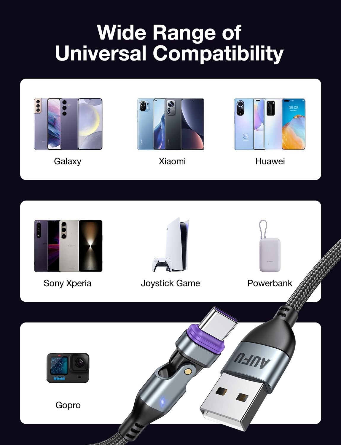 The AUFU magnetic USB C charging cable is a versatile and convenient accessory for charging your devices. With three ports and a magnetic feature, it offers multiple connection options and easy attachment for fast and efficient charging. The USB-C connectivity ensures compatibility with a wide range of devices, making it a practical choice for users looking for a reliable charging solution.