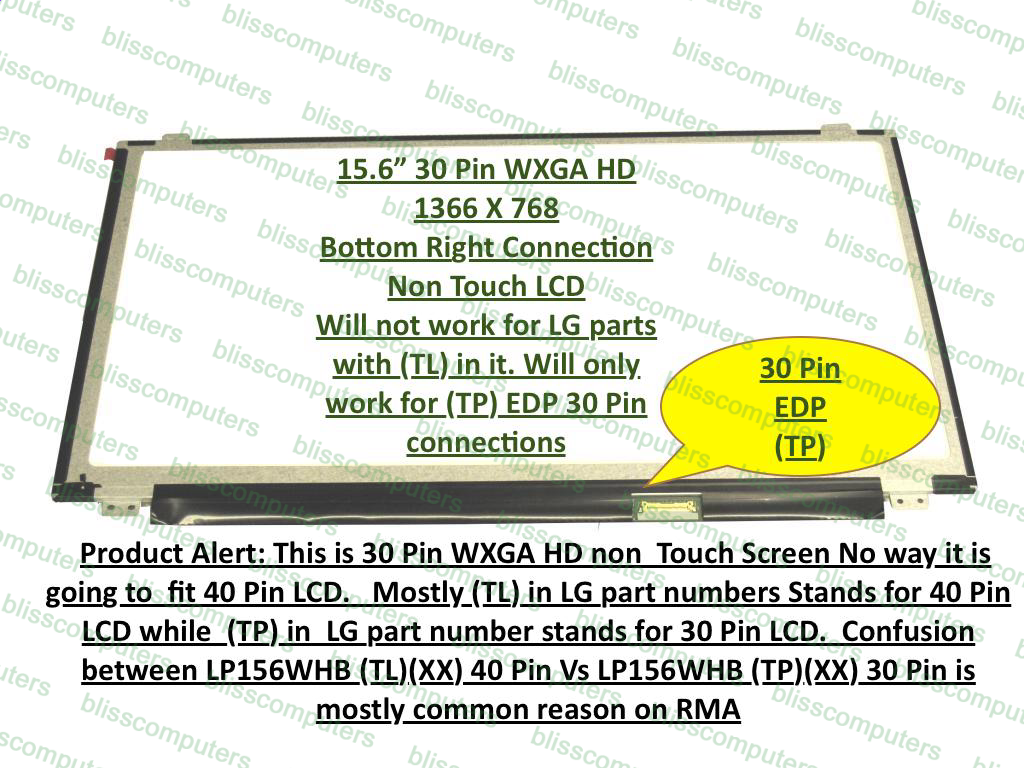 Display AUO B156XW04 V.7 V7 15.6" Laptop LCD LED Screen Verification Note 1. We need your laptop model and serial number / service tag to match up screen technical information. 2.Listed is Non Touch 30 pin screen. 3.Listed screen is widely used to make Touch Screen Assembly. 4.You are not paying us for Touch Screen Assembly. Important Note Desc Note: Sold product is 30Pin bottom right thin frame LCD. It is not regular 40 Pin LCD. In past orders customers were getting confused about pin configuration and they think they are buying standard 40 Pin LCD. So again pay attention to pin configurations. This is 30 pin EDP Connection LCD. This is not standard 40 Pin LCD and if you trying to replace this one with standard 40 Pin LCD it will not work. Title - AU OPTRONICS B156XW04 V.7, V7 Important Notice About Your Order & Shipping You will receive only the item shown and paid for in the listing. Please note that we do not include free tape, adhesive, installation guides, or any other extras. As a business, we cannot provide free items, and we appreciate your understanding. Need Tape ? You can purchase it separately eBay Item 355286906103 Freight Forwarding Advisory We strongly advise against using freight forwarding companies, as they often mishandle packages—damaging boxes, altering packaging, or stacking heavy items on fragile ones. Since an extra party is involved in handling, FedEx, UPS, and USPS will not honor breakage claims , and unfortunately, we cannot assist with such damages either. If you must use a freight forwarder, we recommend: ✅ Asking them to double-box your package for extra protection. ✅ Purchasing insurance to cover any potential damage, as you’ll need to handle claims directly with the insurance provider. Our products contain fragile glass and are not designed for rough handling by freight forwarders. Please take precautions to protect your order. .
