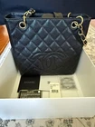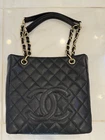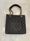 ABSOLUTELY MINT LIKE NEW CHANEL CAVIAR QUILTED SHOPPING TOTE Made in France Calfskin leather , used just a few times Gold hardware Absolutely no sign of wear on the leather or the chain Size medium L 9.5" H 9.5 " W 3.5" 2 Interior pockets, 1 zip and 1 open Snap top closure Handle drop 9" Lining, textile Comes with authenticity card, dust bag and box Purchased from Saks Fifth Avenue