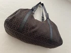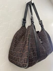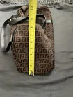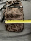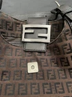 AUTHENTIC Fendi Bag. Black fendi logo with brown backround. Minor scratches on buckle. Please reference pictures. NO RIPS, NO TEARS. IN GREAT CONIDITION. COMES WITH DUST BAG.