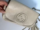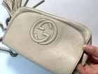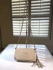 AUTHENTIC Gucci Soho Ivory Calfskin Pebbled Leather Chain Strap Crossbody Shoulder Bag with Tassel in EXCELLENT condition. I bought this versatile and practical crossbody Gucci shoulder bag from Bloomingdale’s in San Francisco, CA for full retail at $2500+. It’s in pristine condition I promise you, you won’t find another ivory color, off white Gucci purse that’s been pre-owned/pre-loved in better condition than this one. Zero tears, zero rips, zero stains, zero blemishes, zero stitching issues, zero zipper issues. The color of the purse will go with all your outfits. REFER TO PHOTOS. Adhering to eBay rules for any items over $100, I will mail it with signature required. YOU WILL HAVE TO SIGN FOR IT.